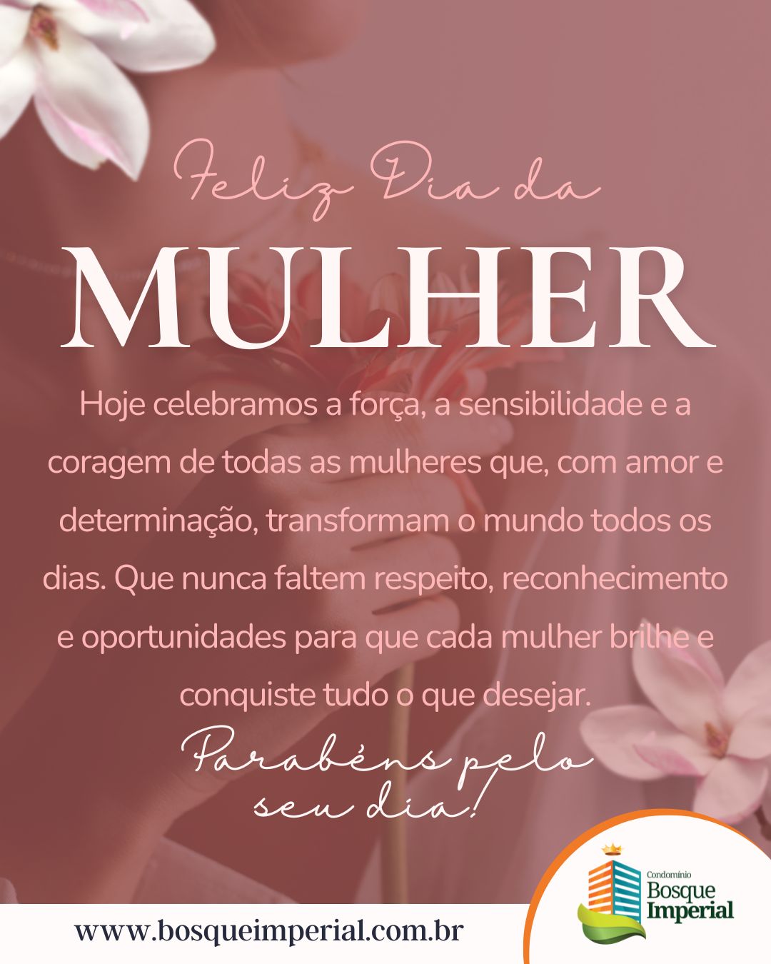 Hoje celebramos a força, a sensibilidade e a coragem de todas as mulheres que, com amor e determinação, transformam o mundo todos os dias. Que nunca faltem respeito, reconhecimento e oportunidades para que cada mulher brilhe e conquiste tudo o que desejar.