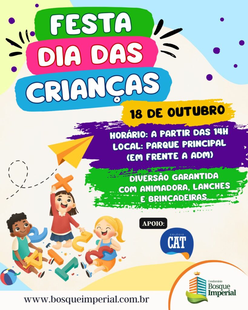 🎉 Festa do Dia das Crianças no Bosque Imperial! 🎈 Prepare-se para uma tarde cheia de alegria e diversão! 😄 No dia 18 de outubro, a partir das 14h, venha celebrar com a gente no Parque Principal (em frente…