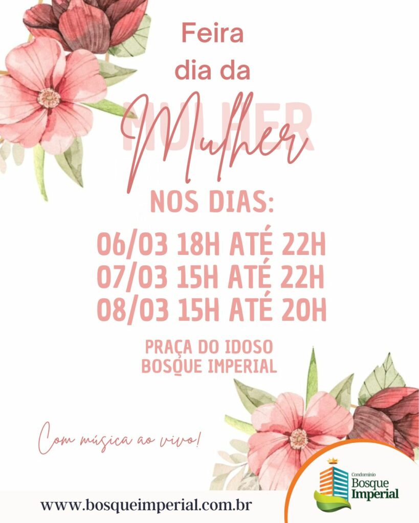 Convidamos todos para prestigiar a Feira do Dia da Mulher, um evento preparado com carinho para celebrar essa data tão especial, com amor, união e reconhecimento 💖 E para deixar tudo ainda mais especial, teremos música ao vivo durante o…
